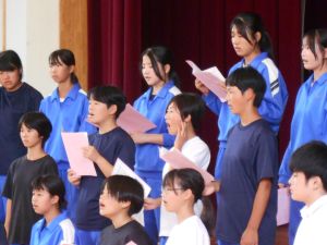 音楽会に向けて、清水先生に合唱指導を行っていただきました。耳の下のくぼみの所に手を当てて口を大きく開くように教えてもらうと、子どもたちはそれを意識して大きな口で歌っていました。自分たちがより良くなっていくために話をしっかり聞き一生懸命歌う姿がすばらしかったです。先生の情熱が子どもたちに伝播していく様子を間近で見させていただきました。ありがとうございました。