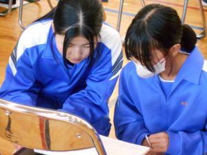 秋の句会がありました。夜自分の部屋から窓越しに見える月を見ていると、ずっと月に見られているようだと詠った句や朝寒い時に息を吐くと白くなる様子を子どもの頃に脳裏に焼き付いている電車ごっこと関わらせながら読んだ句。作成した句の背景を知ったら子どもたちそれぞれの感性があふれていてとても良いなぁと思いました。山間地で育っている子の感性に触れられたとても良い時間でした。