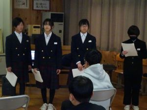 小学校6年生の体験入学・中学校説明会がありました。中学校1年生は時間をかけて6年生のために中学校生活の説明の準備をしてきました。緊張した様子でいざ本番を向かえました。人数が多い6年生に対して堂々と分かりやすい説明をしていました。緊張するというのは、しっかりやりたいからの表れだと思います。説明を終えた後の「ホッ」とした表情が今までの頑張りを物語っていました。