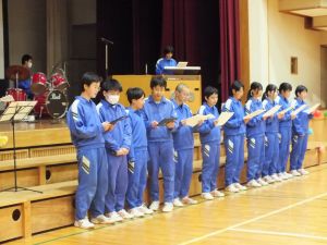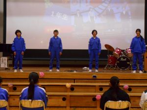 3年生を送る会が開かれました。1学年からは、4人の力で心がこもった歌が3年生に送られました。2年生からは、漫才、ダンス、バンドを組みながら全員での歌を3年生に届けてもらいました。3年生の笑顔や身を乗り出す姿から、1、2年生の3年生を大切にする気持ちが届いたとても良い会になりました。18日には卒業式を迎えます。相手を大切にできるすばらしい卒業式ができると思います。
